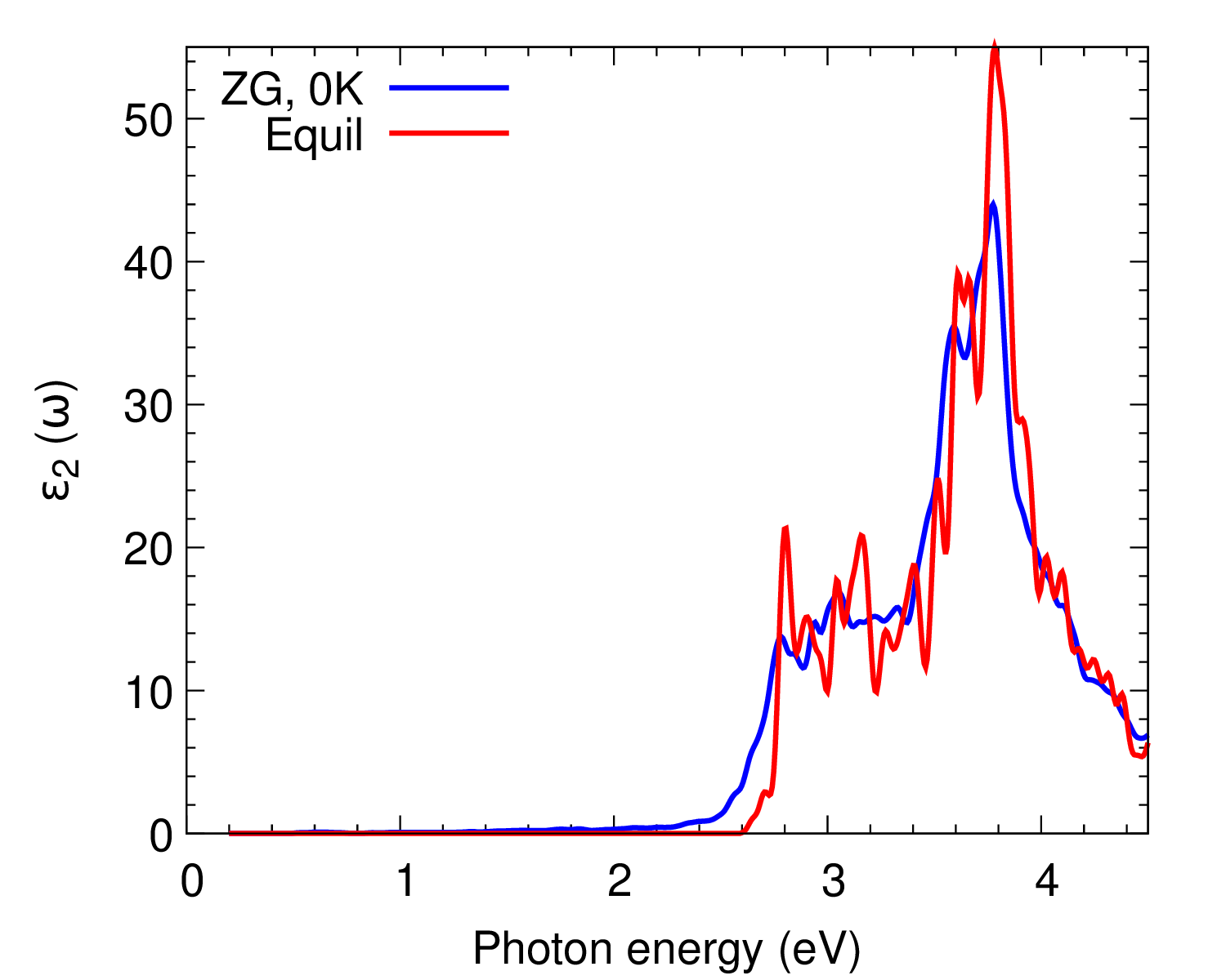 Run an optical spectra calculation for silicon using the \(3\times3\times3\) ZG supercell following exactly the same procedure used for the equilibrium structure (as above); make sure now you use the file ZG-nscf_333_0.00K.in.